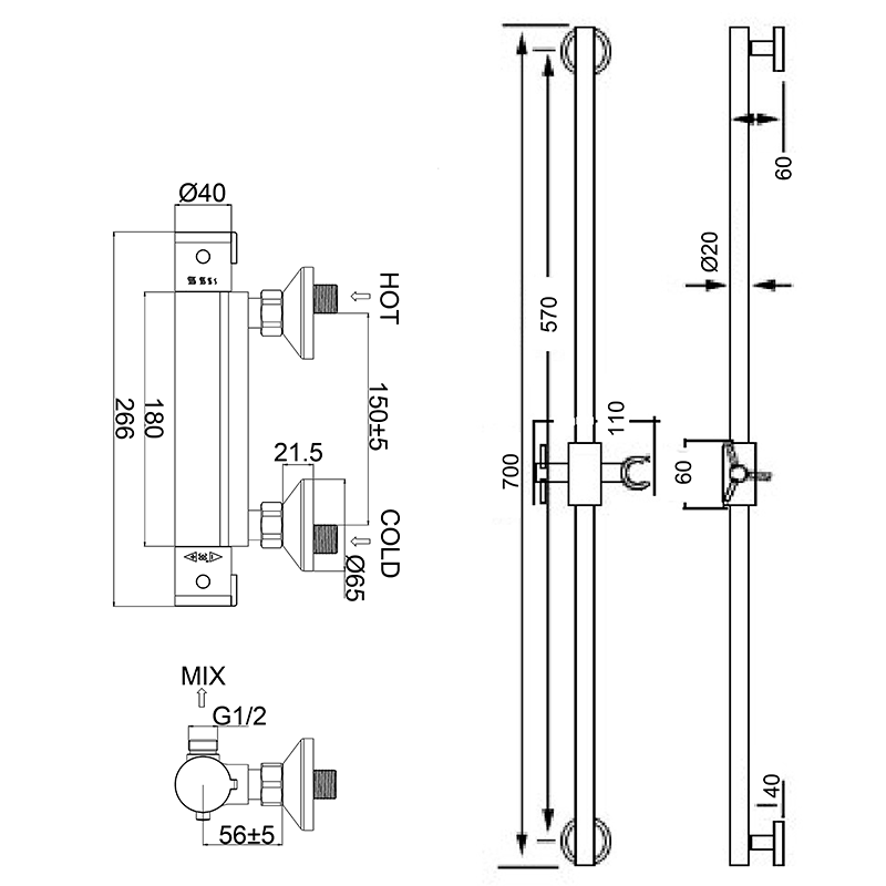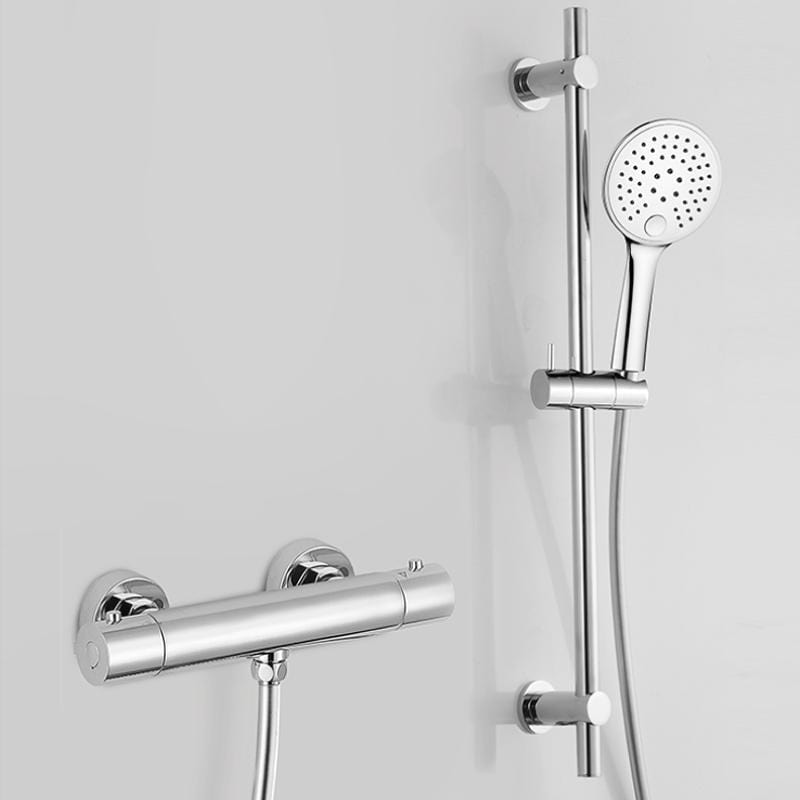 • Thermostatischer Wandduscharmatur mit Keramikkartusche. Anti-Verbrüh-System (Sicherheitsstopp bei 38°C) und Rückschlagventil der Schweizer Marke NEOPERL®.