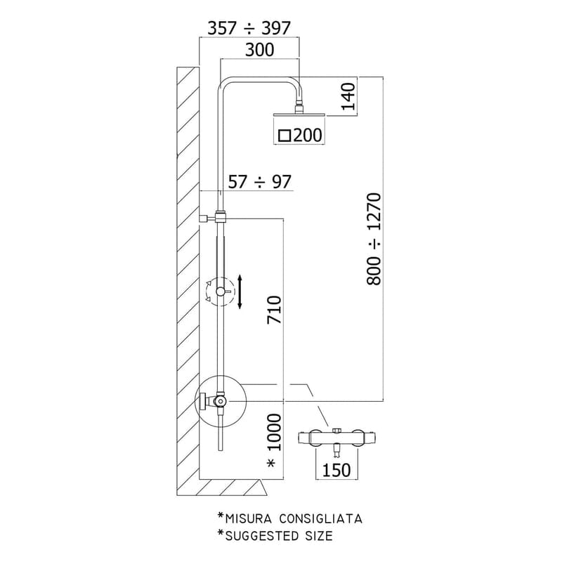 • Höhenverstellbar, bittet großen Freiraum unter der Kopfbrause