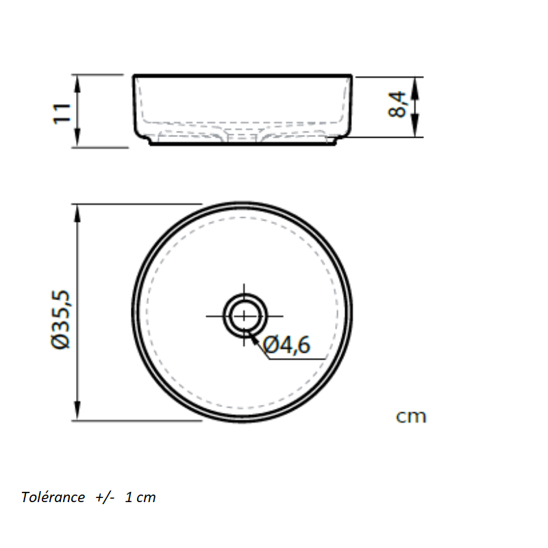 Aufsatzwaschbecken aus Keramik, AKUMAL 48 - Welt der Bäder_Dibujo Tecnico