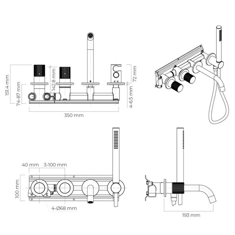 - 4-Loch Armatur komplett mit Außenteil und Befestigungselement