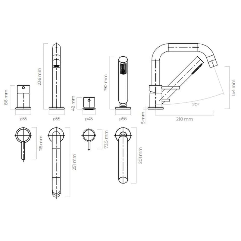 • 4-Loch Armatur komplett mit Außenteil und Befestigungselement