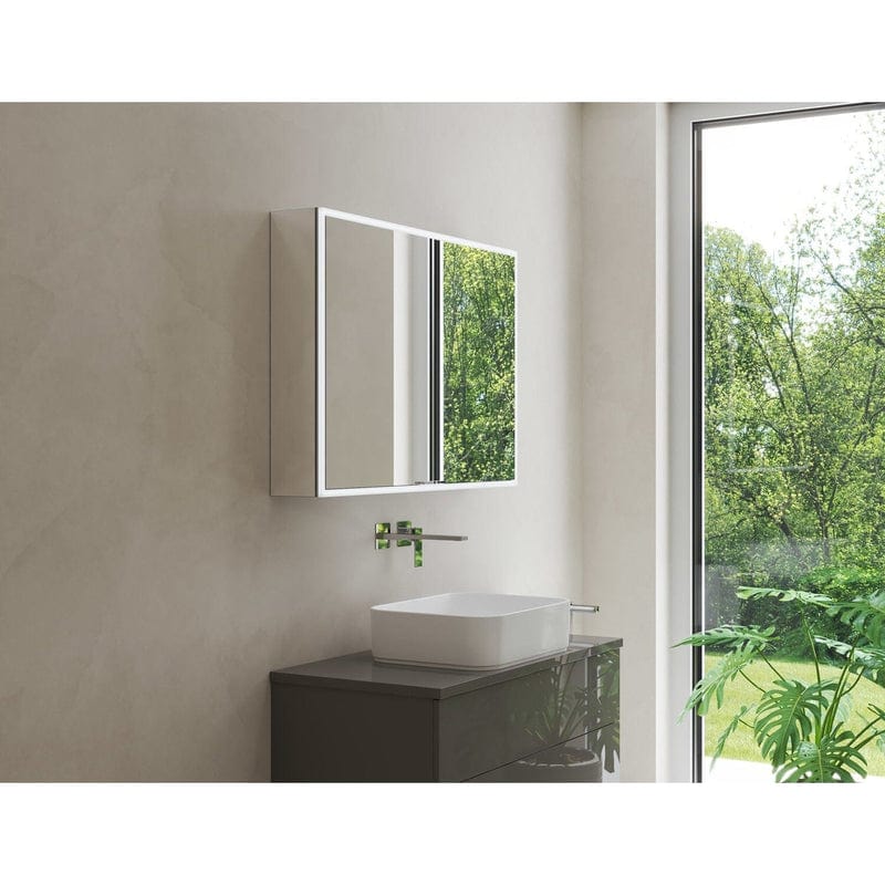 Der KRONENBACH Cube 2.0 Spiegelschrank (80 cm, Aufputz, 2-türig) bietet modernes Design, dimmbare LED-Beleuchtung, Touch-Bedienung, verspiegelte Rückwand und praktischen Stauraum für Ihr Badezimmer