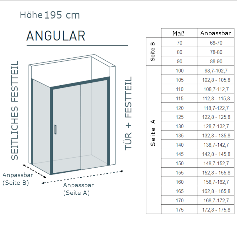 • Maße: seitenteil variabel zwischen 70, 80 und 90 cm