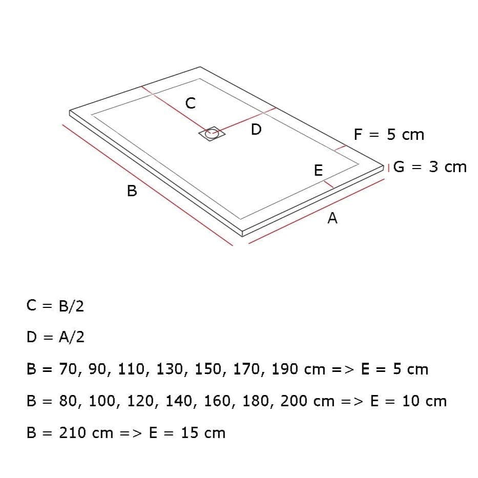 Für Duschplatten ab einer Länge oder Breite von 120 cm gilt zusätzlich: