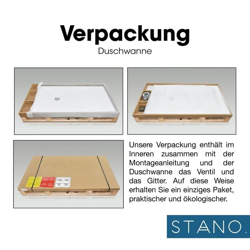 Unsere Sendungen erfolgen immer per Landfrachttransport. Ihre Produkte werden in einer verstärkten Kartonschachtel verpackt und im Falle von Badewannen oder Duschwannen auf einer Palette befässtigt. Unsere Duschwände sind in einer hochwertigen Kartonverpackung für Glastransporte.