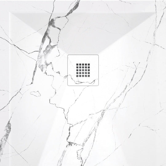 Mineralguss-Duschwanne extra flach DEKOR ARABESCO, weißes Marmor