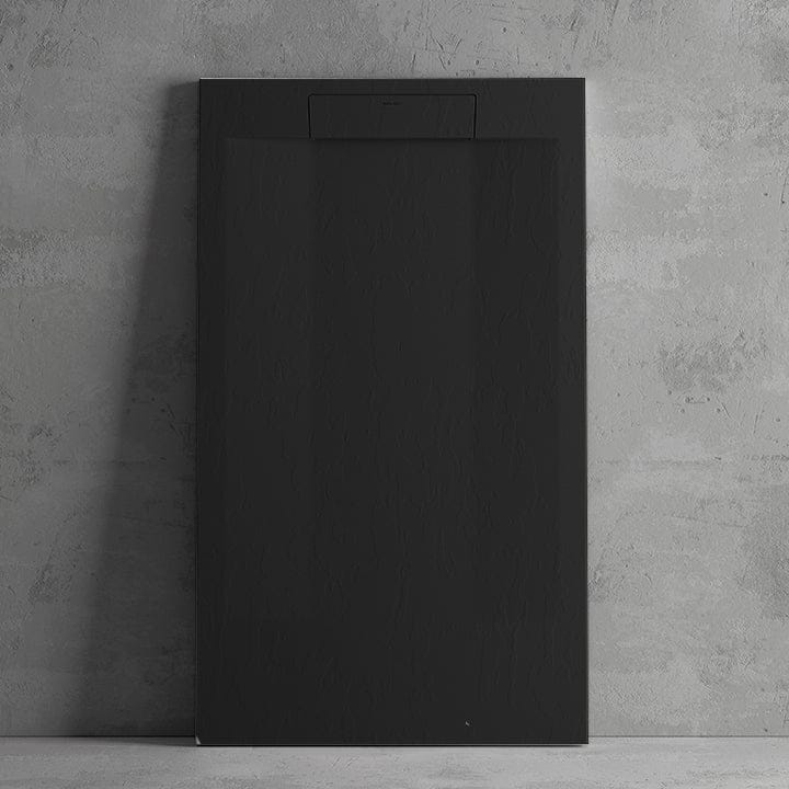 Mineralguss-Duschwanne extra flach SUEZ, Schieferoptik, SCHWARZ