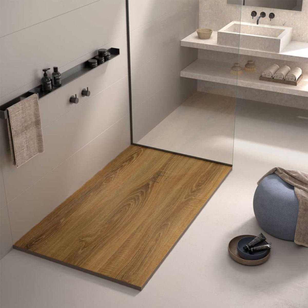 Extra flache Duschwanne, DEKOR HALIFAX, Holzoptik - Welt der Bäder