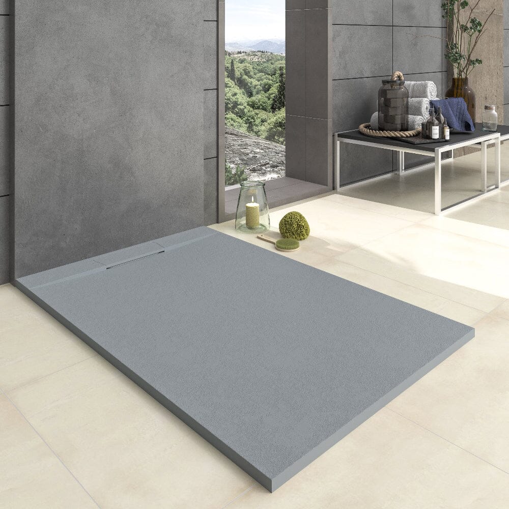 Mineralguss-Duschwanne extra flach CUARZO, Schieferoptik, GRAU