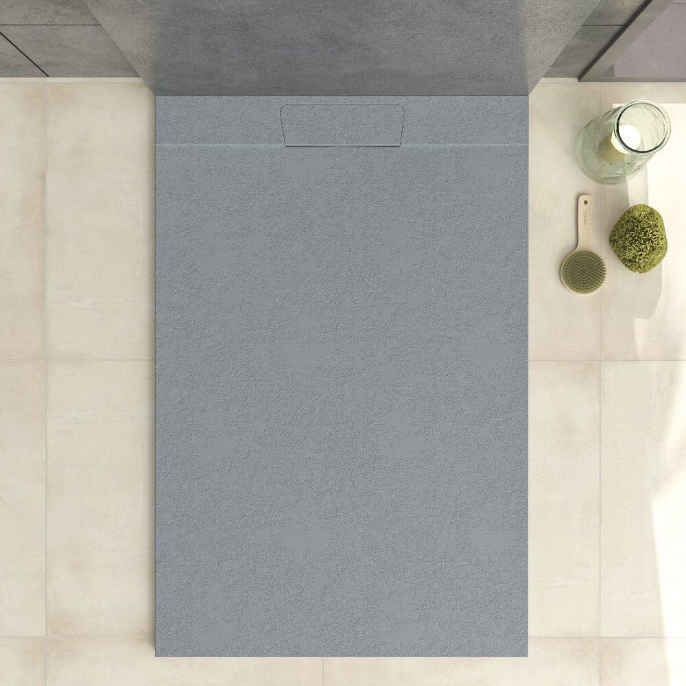 Mineralguss-Duschwanne extra flach VORTEX, Schieferoptik, GRAU