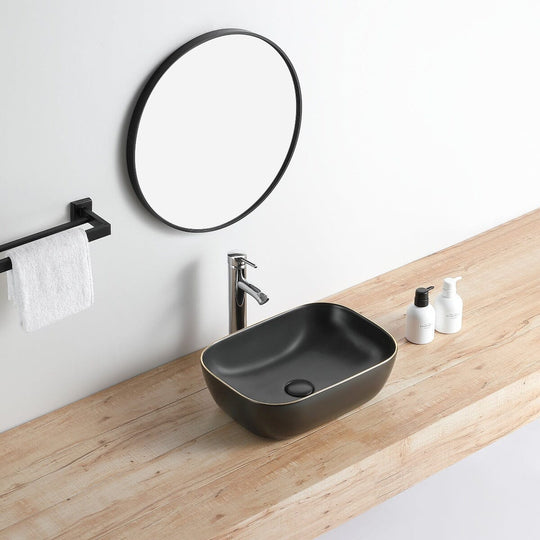 Vasque à poser en céramique CUARTO noir mat liseré doré - Le Monde du Bain