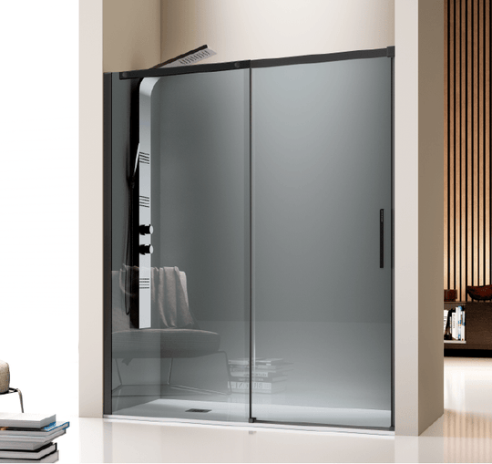 Duschwand mit Schiebetür LUNA Schwarz - Glas 8mm in Parsol Grau - Welt der Bäder