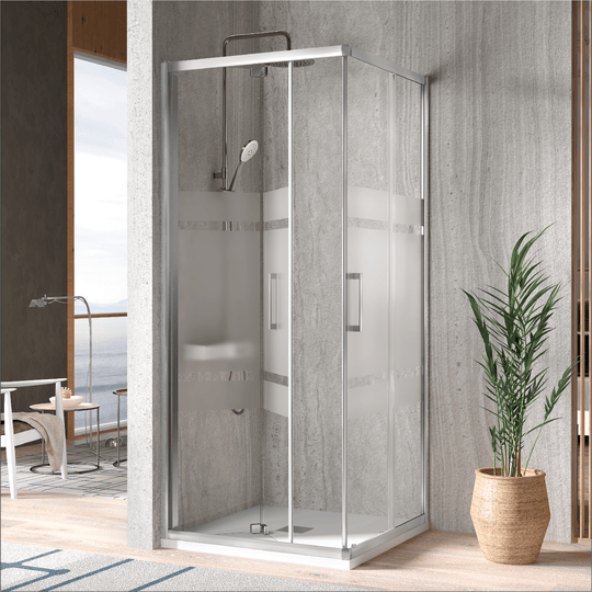 Eckdusche mit Falttür und Schiebetür S300 mit Sichtschutz- Glas 6mm