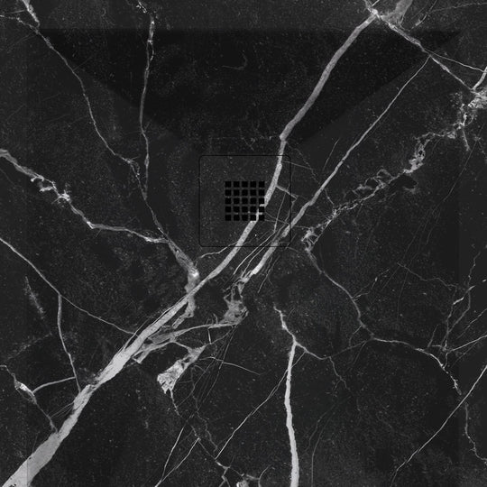 Mineralguss-douchebak extra plat DEKOR MARQUINA, zwarte marmer