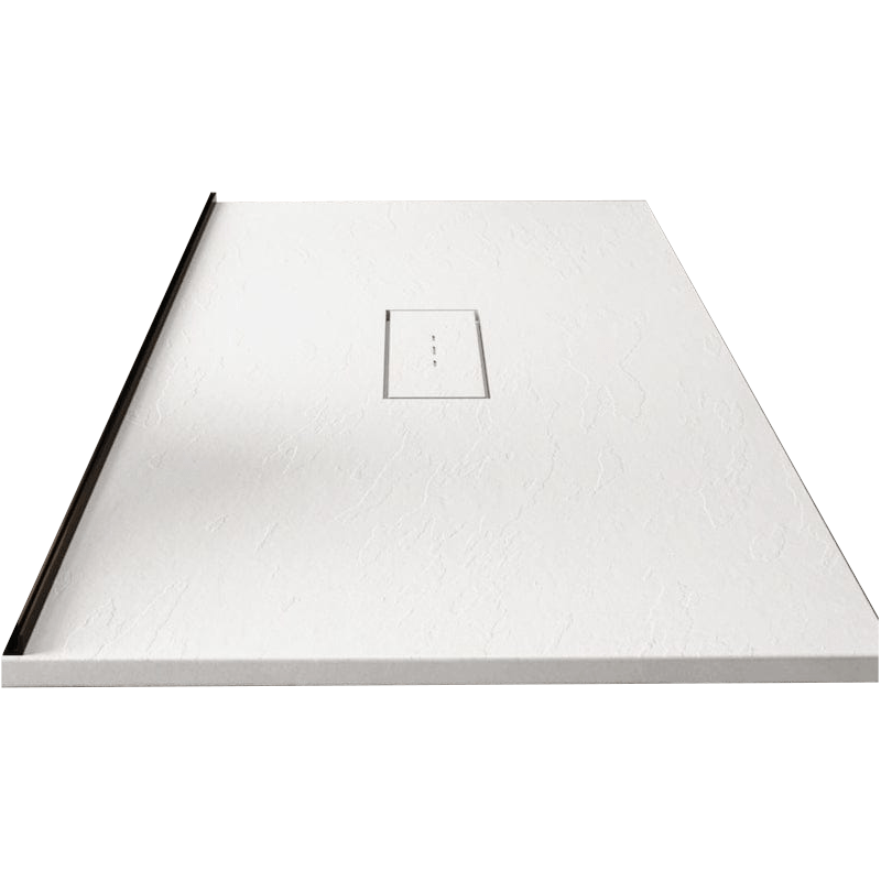 Mineralgiet-douchebak extra plat PURE, leisteenlook, wit