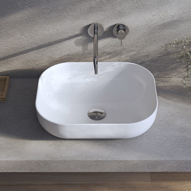 Opzetwasbak van gietmarmer, ovaal, PALIO matwit