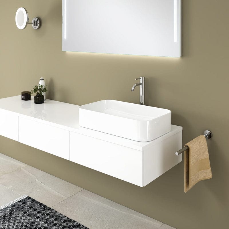 De KRONENBACH Cube opzetwastafel valt op door het minimalistische design en hoogwaardige afwerking. Ideaal voor moderne badkamers, biedt hij een elegante uitstraling en praktische functionaliteit in een compact formaat.