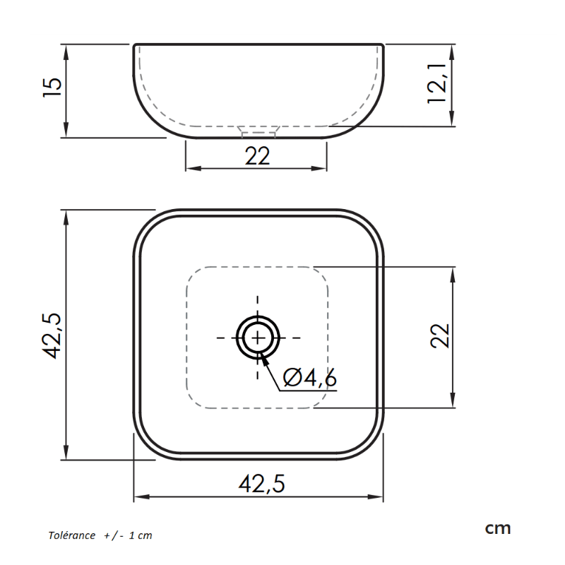 Aufsatzwaschbecken aus Keramik, AKUMAL 48 - Welt der Bäder_Dibujo Tecnico