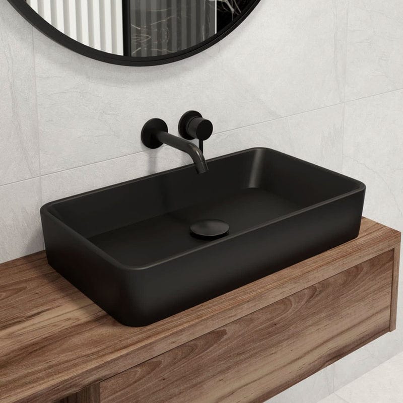 Opzetwasbak van gietmarmer, rechthoekig, SIENA, zwart/wit