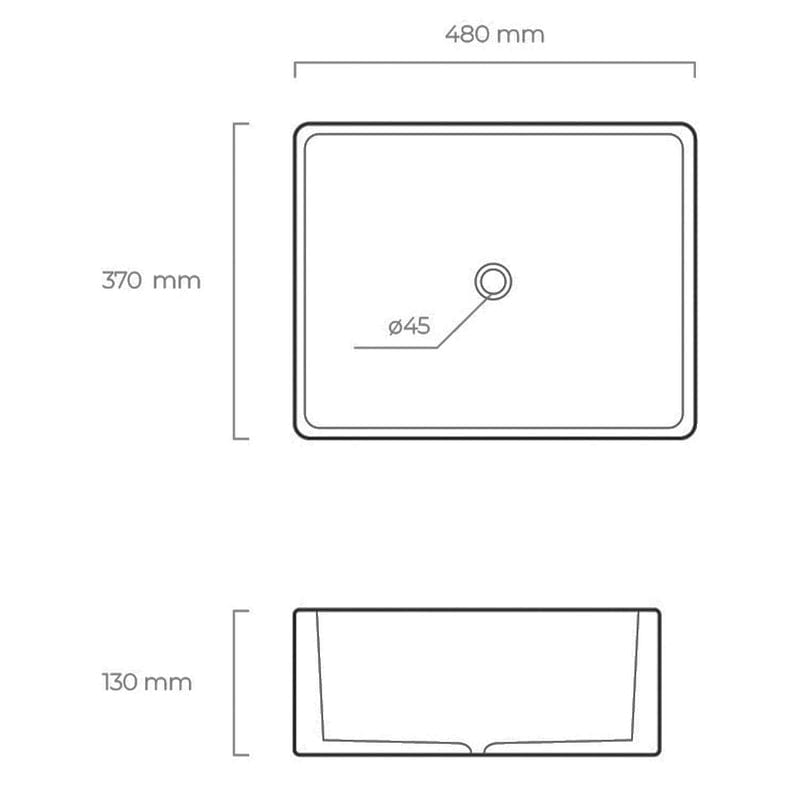 Aufsatzwaschbecken aus Keramik, AKUMAL 48 - Welt der Bäder_Dibujo Tecnico