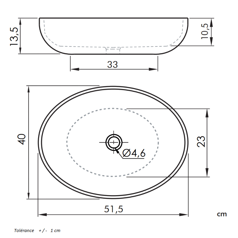 Aufsatzwaschbecken aus Keramik, AKUMAL 48 - Welt der Bäder_Dibujo Tecnico