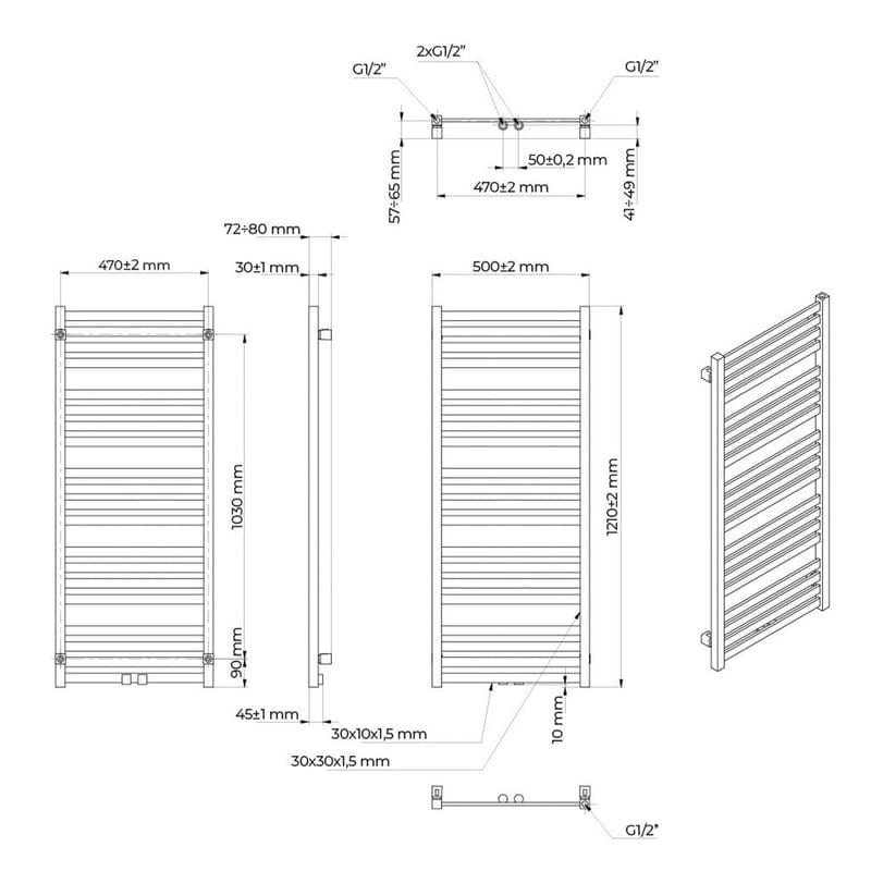 OLTENS Vanlig Badradiator 50 x 121 cm