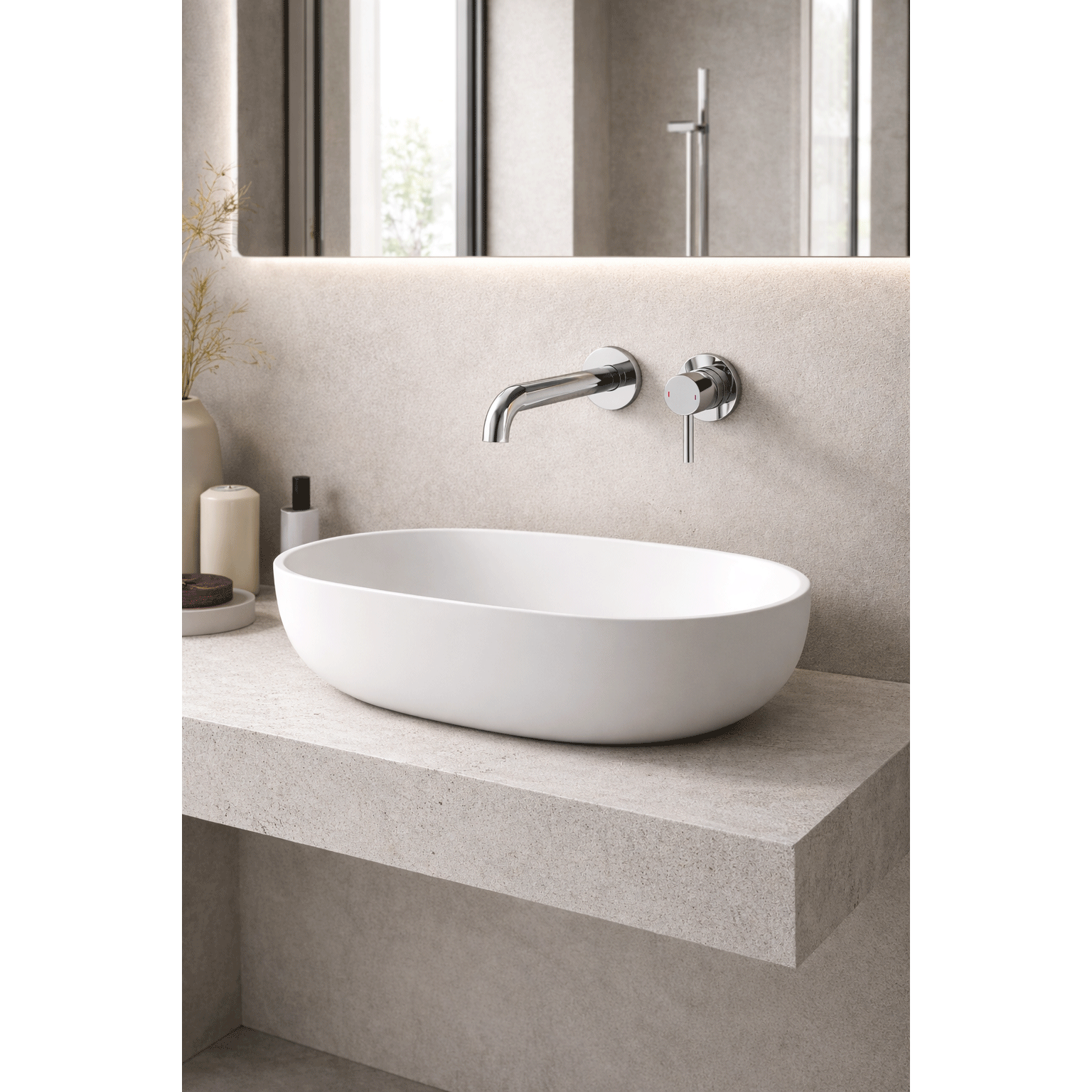 Deze enkele hendelmengkraan voor de muur is perfect voor bijzonder moderne en ook minimalistisch ingerichte badkamers. Eenvoudige stijl in volmaakte uitvoering voor vrijstaande wastafels.