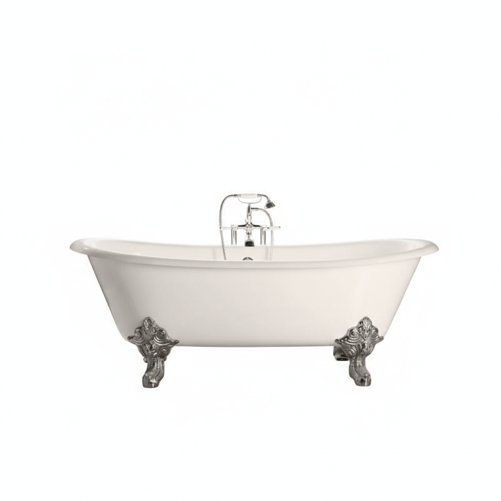 Freistehende Gusseisen Badewanne BRADFORD weiß - Welt der Bäder|Füße CHROM
