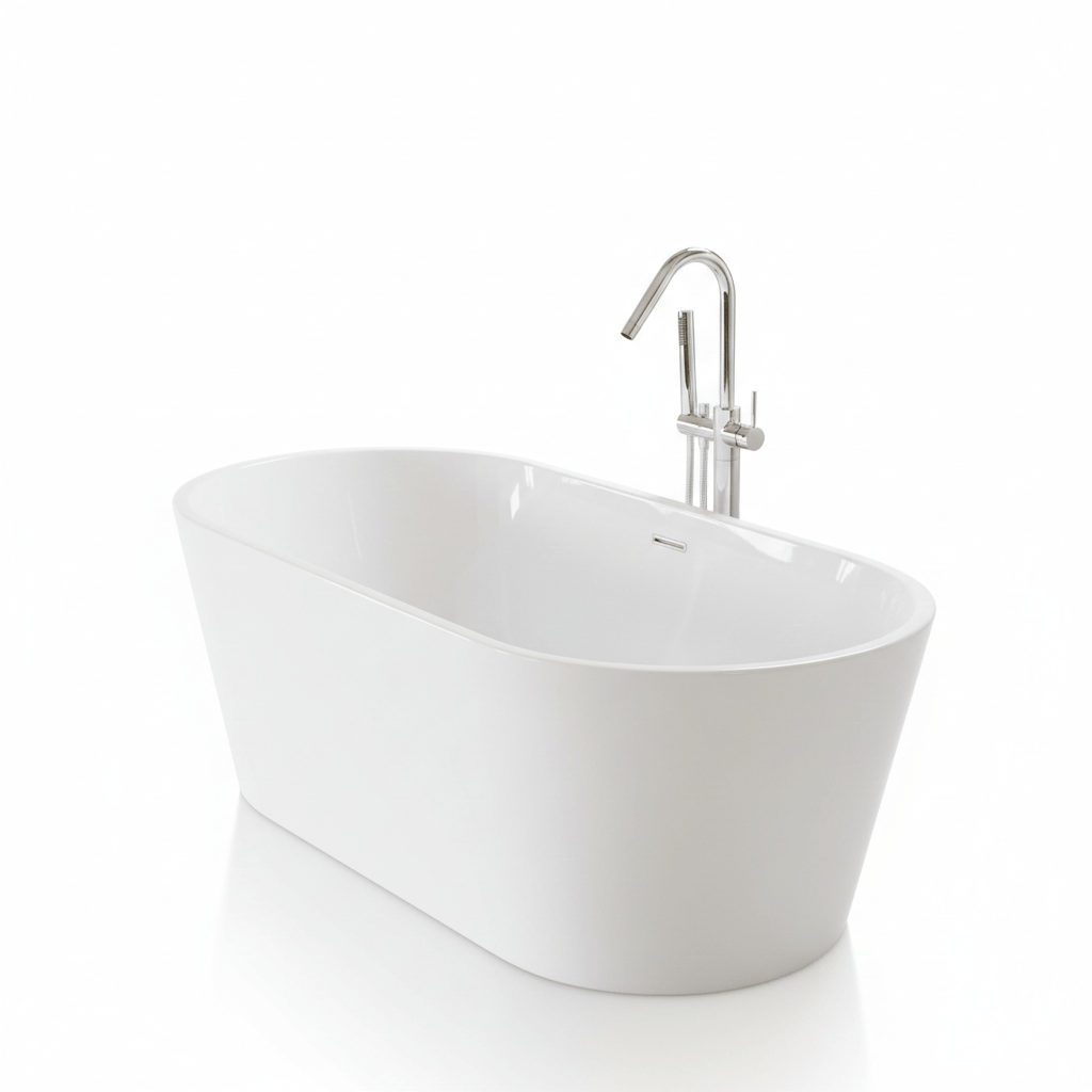 SANYCCES - Versterkte, vrijstaande acrylbadkuip van twee lagen hoogwaardig 8-mm-acryl met een zeer duurzame glasvezelversterking. Bestaat uit één stuk en heeft aan beide zijden een rugleuning.