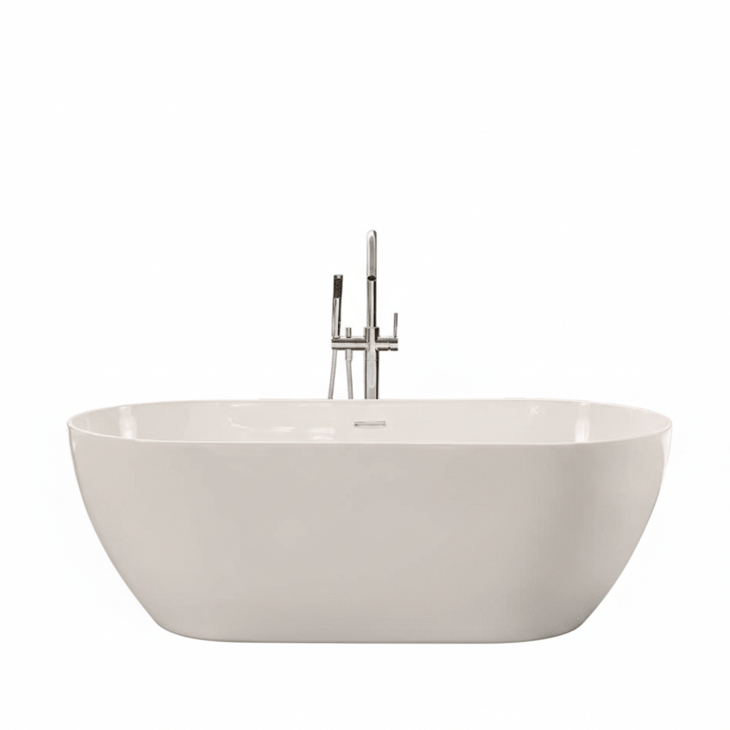 SANYCCES "- Versterkte, vrijstaande acrylbadkuip van twee lagen hoogwaardig 8-mm-acryl met een zeer duurzame glasvezelversterking. Bestaat uit één stuk en heeft aan beide zijden een rugleuning."