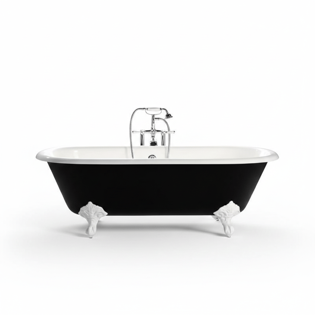 Gietijzeren bad PLYMOUTH van Rogier&Mothes met voeten. Van binnen geëmailleerd en van buiten handgeschilderd. Voor een optimaal comfort, van twee personen biedt dit model een dubbele rugleuning. Een badkuip, die geïnspireerd is door vervlogen tijden.