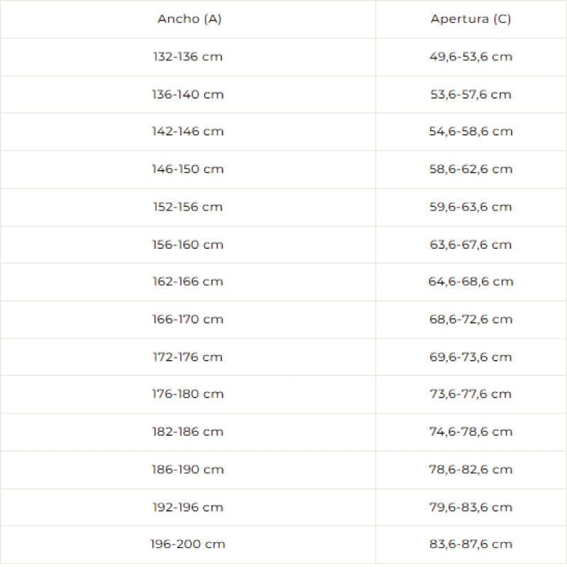 • Lengte: 132 cm tot 200 cm