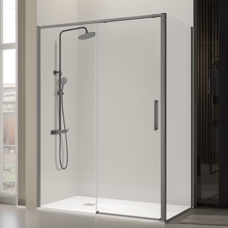 Douchewand LUNA Zwart met schuifdeur – 8 mm veiligheidsglas in Parsol grijs