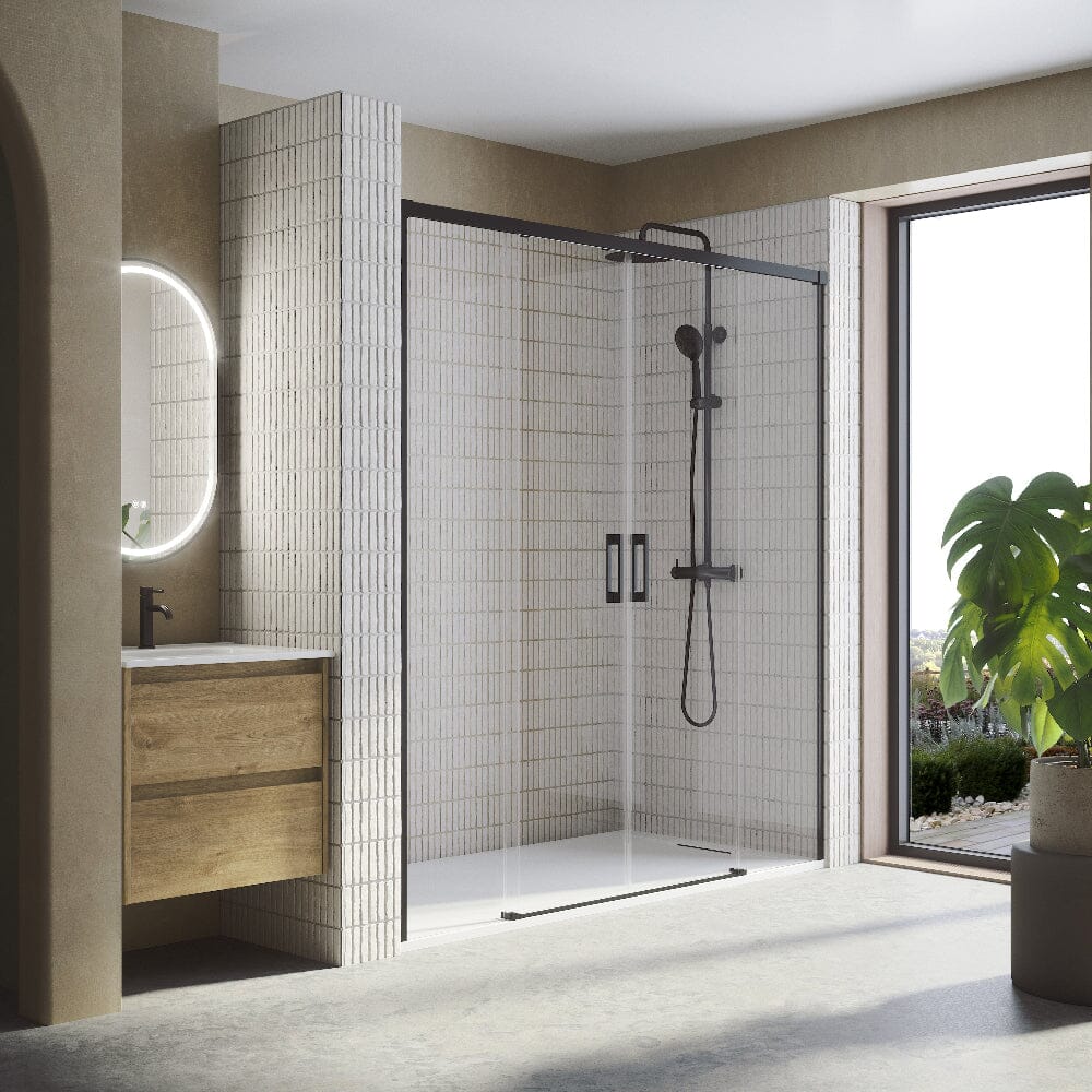 Douchescherm met 2 schuifdeuren voor nis MUSE zwart - 6 mm glas