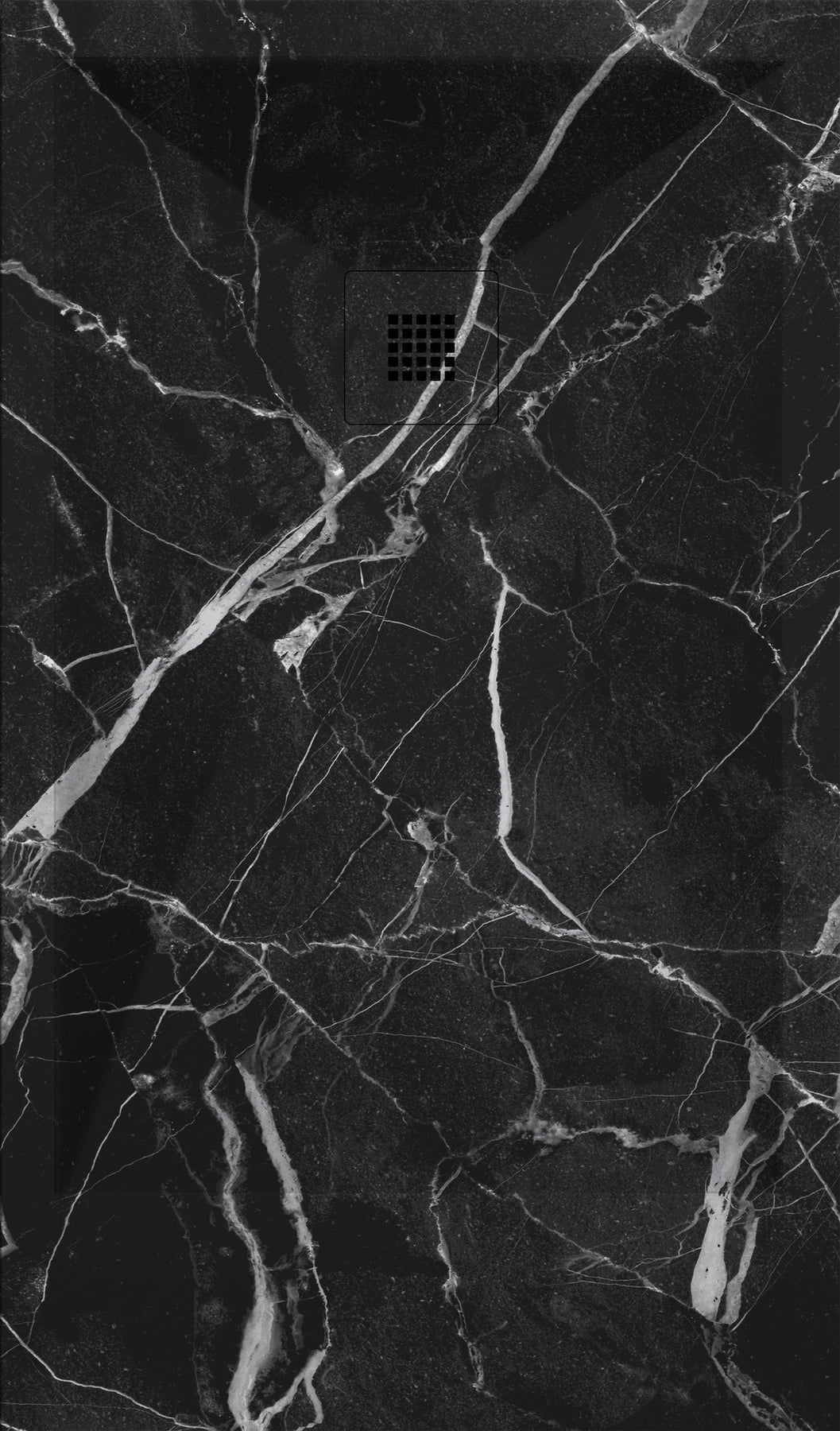 Extra platte douchebak DEKOR MARQUINA, zwart marmer. Het unieke zwartmarmerdesign maakt elke douchebak tot een persoonlijk en uniek stuk.