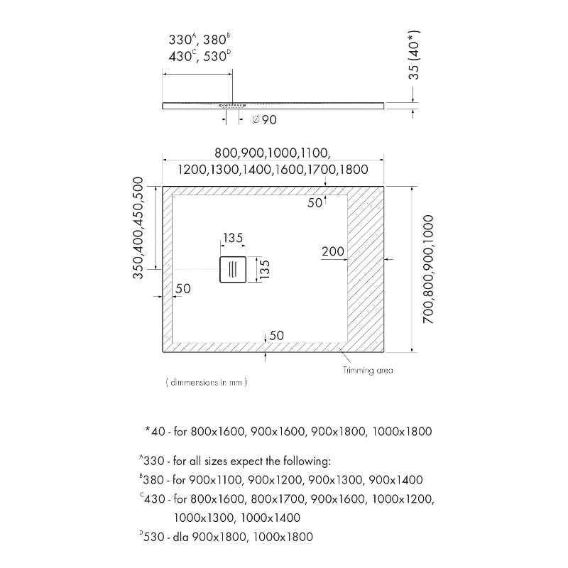 Al onze doucheplaten worden op maat gemaakt volgens uw specificaties - dus echte maatwerk.