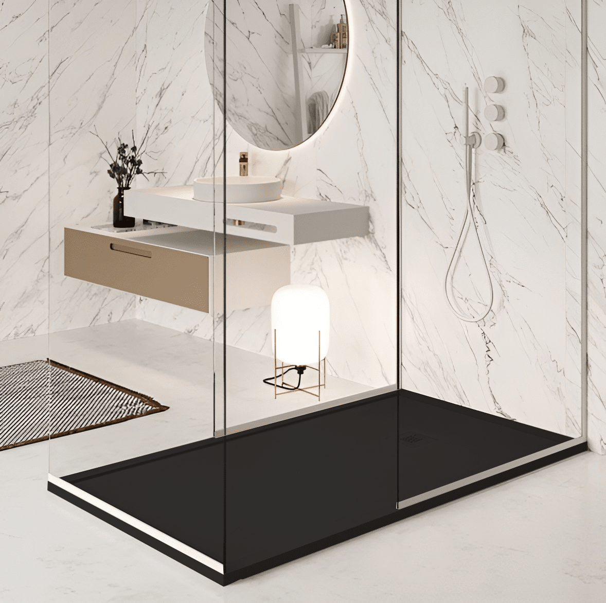 Duschwannen mit Struktur aus Mineralguss sind ideal für ultramoderne Duschen und die beste Alternative zu Acryl-Duschwannen.