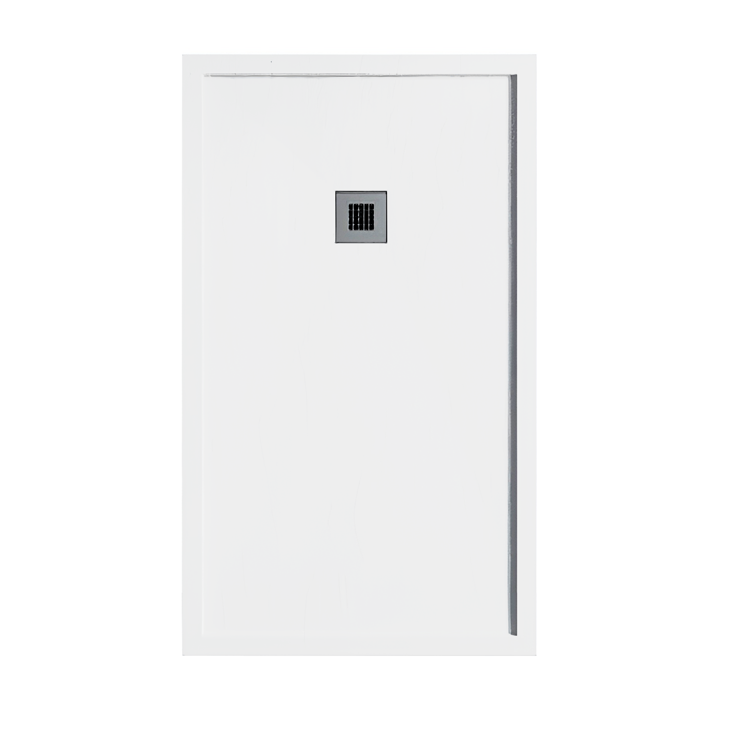 Mineralgiet-douchebak extra plat PURE, leisteenlook, wit
