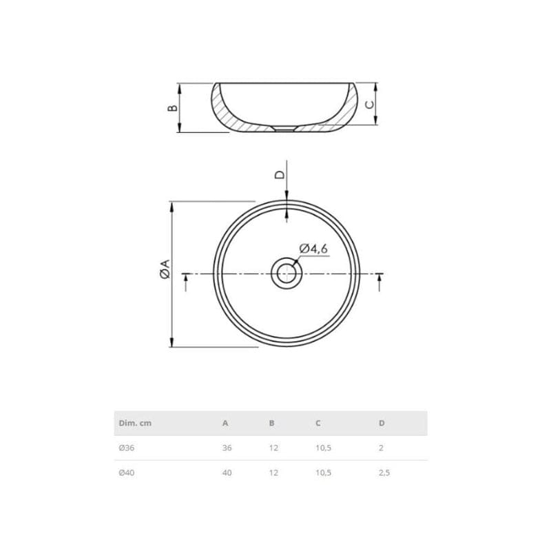 Verkrijgbaar in twee maten: Ø36 of Ø40 cm