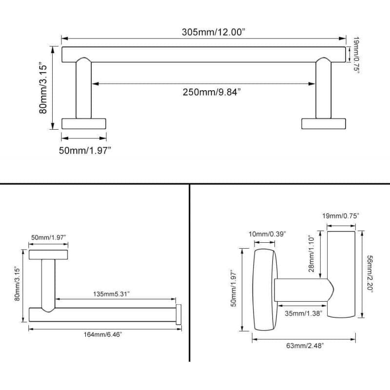 - Bevat: handdoekhouder + toiletrolhouder + haak
