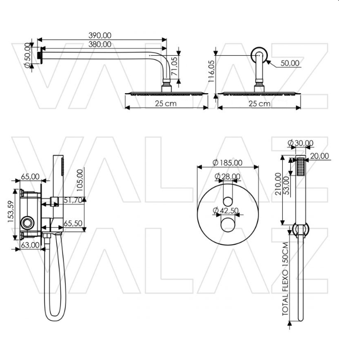 • Douchekop: Ø 25cm