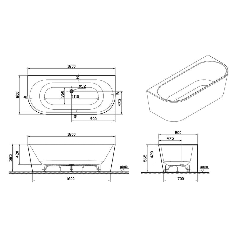 badkuip met poten  Al onze producten voldoen aan de strengste marktstandaarden: D11-112 september 2009, EN 14516 / IN1 september 2010, EN 14516 + A1 september 2010 en EN 232 december 2012.