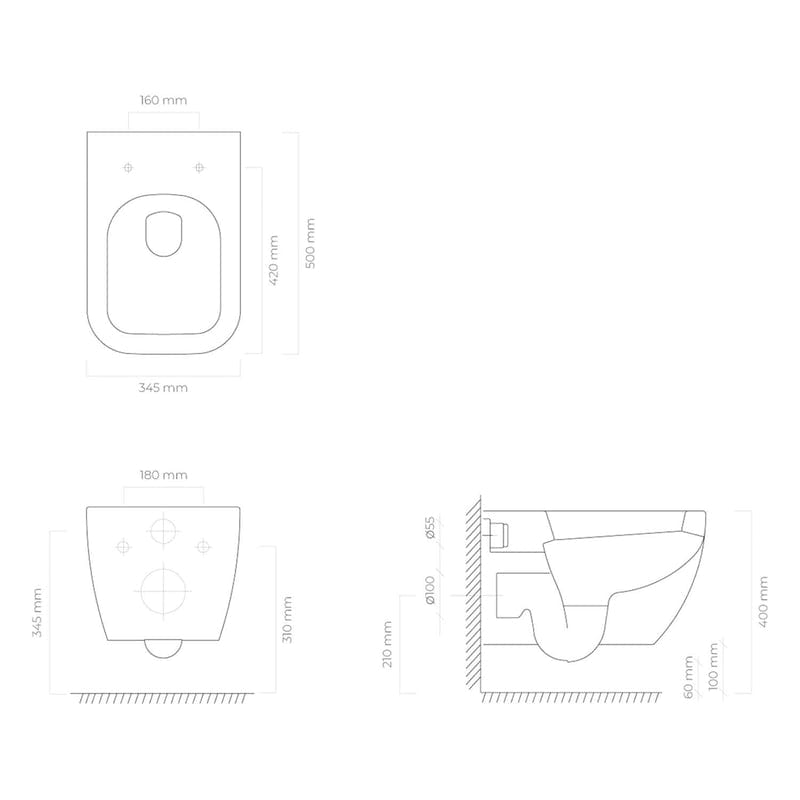 Modernes Hänge-WC, Keramik, ATRIA, Unterputz-Spülkasten Schwarz