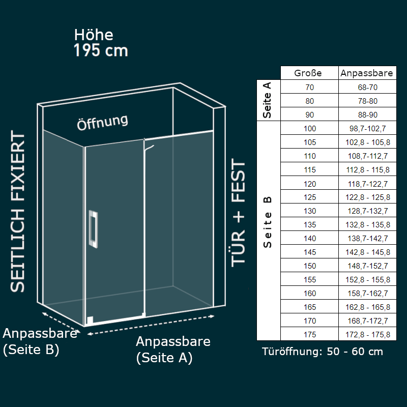 - Maße: seitenteil Variabel zwischen 70, 80 und 90 cm