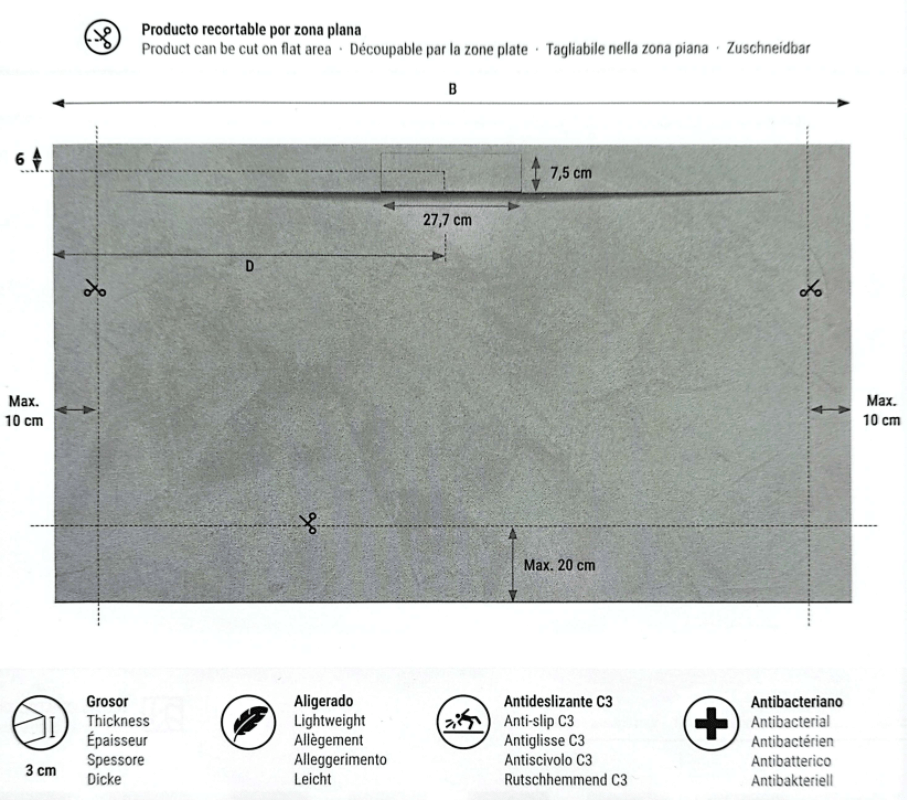 - Auf Bestellung gefertigte Duschplatten nach wählbarer Größe