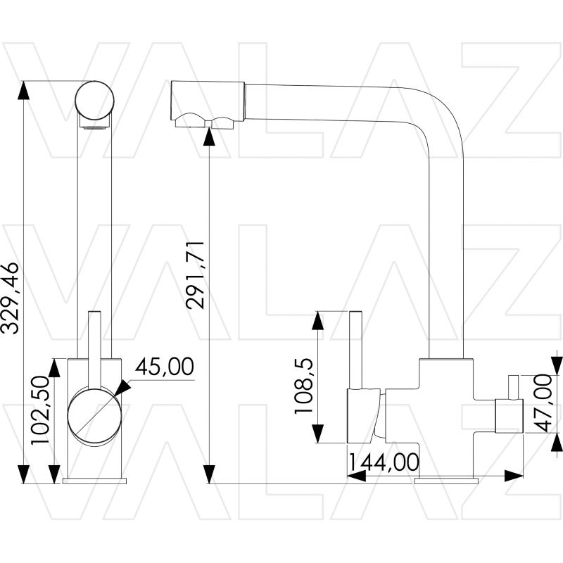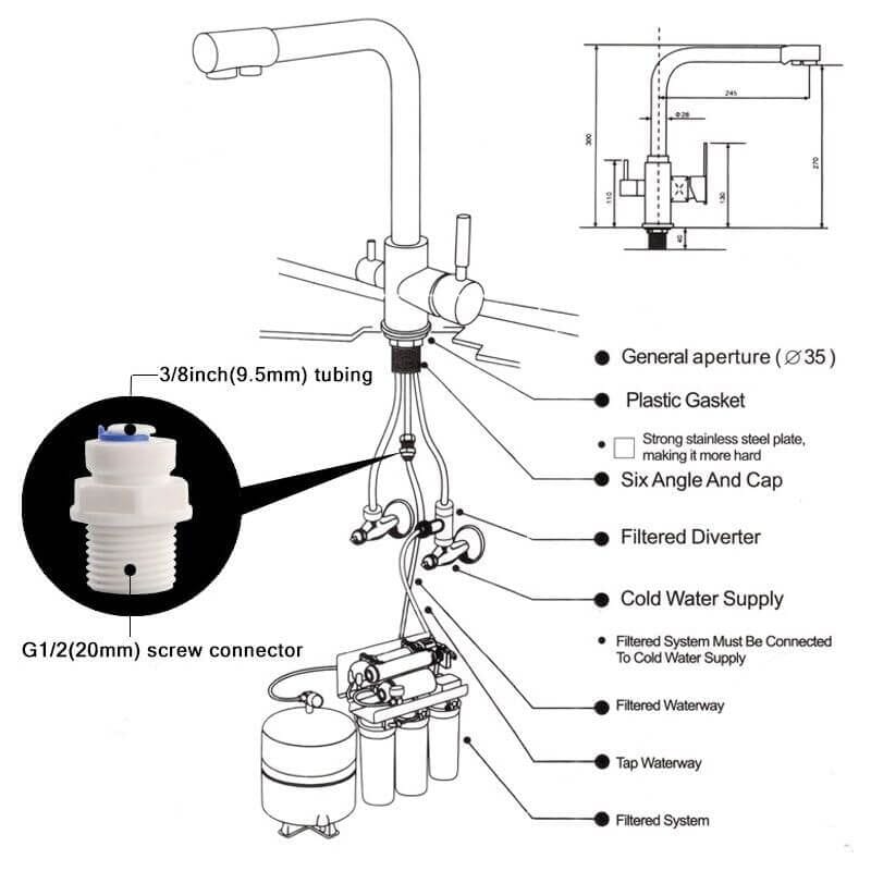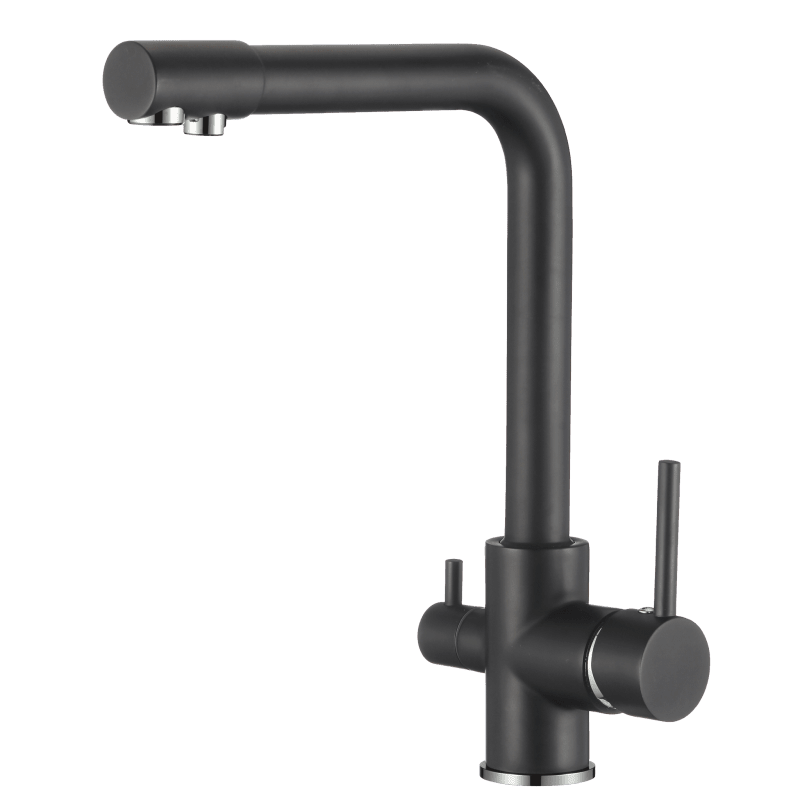 Küchenarmatur mit integriertem 3-Wege-Osmoseauslauf für Kaltwasser, Warmwasser und Osmose.