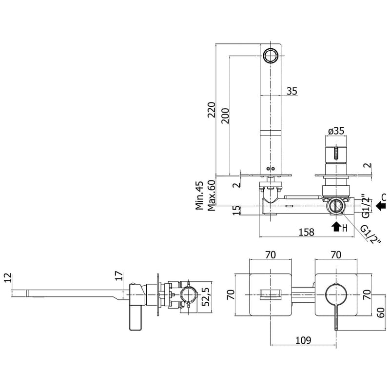 Kronenbach Krona 2.0 Waschtisch-Wandarmatur Ausladung 20 cm inkl. Grundkörper