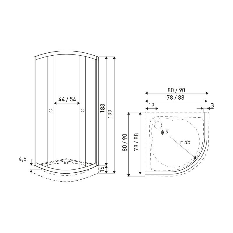 • Duschwannengröße: 80 x 80 x 16 cm, 90 x 90 x 16 cm