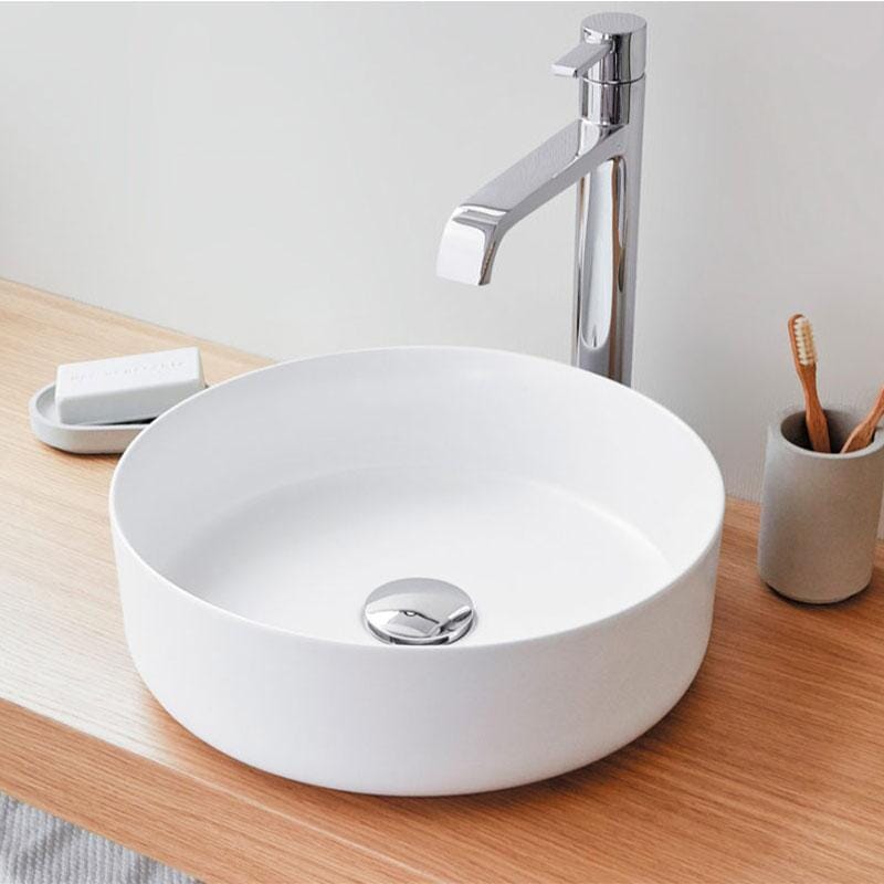 Das runde Aufsatzwaschbecken MARSALA aus mattem oder glänzendem weißem Keramik bietet ein modernes und elegantes Design. Seine makellose Oberfläche und Vielseitigkeit verleihen jedem Badezimmer Stil und Funktionalität.