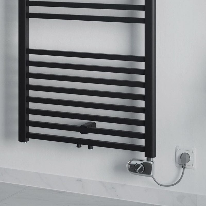 - Montagefertig inkl. Heizstab Typ 3 (chrom), Thermoflüssigkeit, 1 Befestigungsset (variabler Wandabstand) sowie 1 Stück Verschluss- und 1 Stück Entlüftungsstopfen